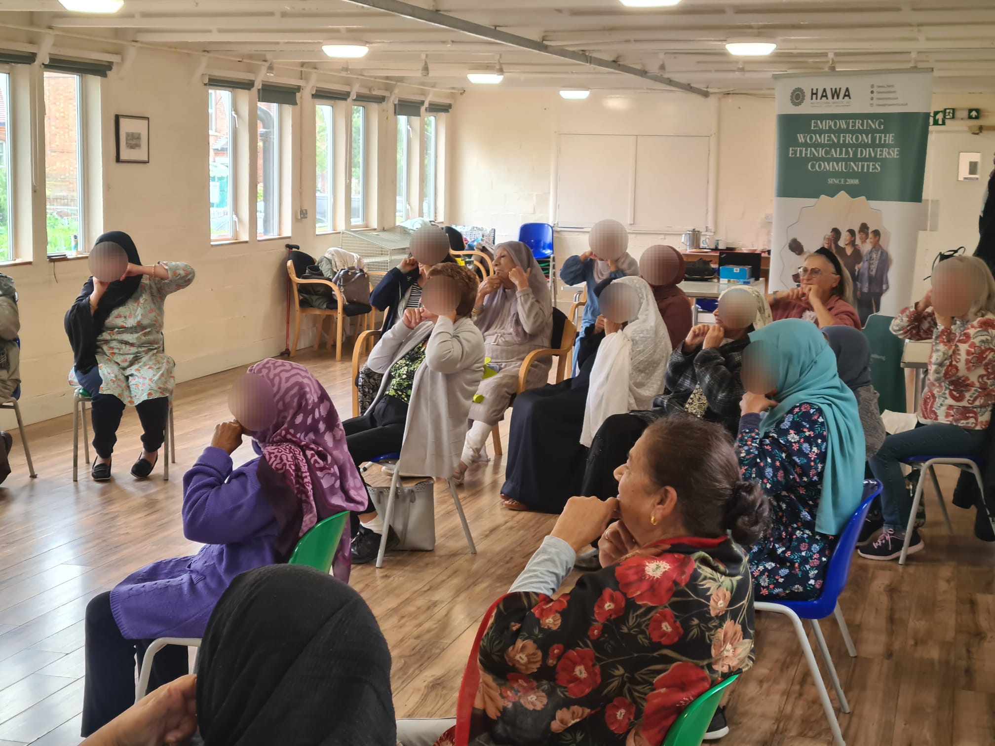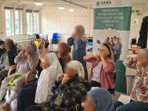 Face yoga at the Saheli Day Centre, enjoyed by all. A very therapeutic session.